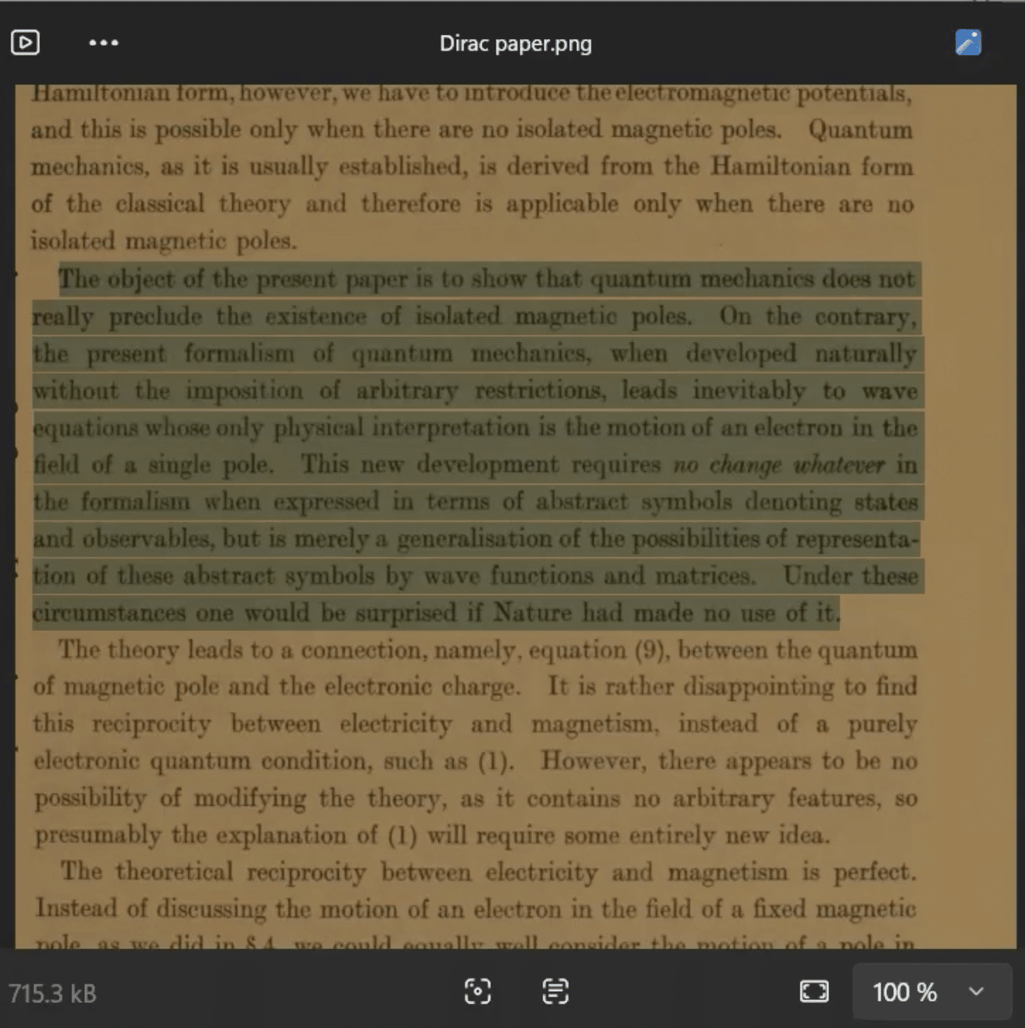 Túto vetu musím prízvukovať, rovnako ako sme sa o tom bavili v Januárovom Webinári o magnetickom monopóle, pretože dokonca aj sám Paul Dirac, skvelý fyzik, matematik a chodiaca ľudská kalkulačka jasne prehlásil, že „čokoľvek čo príroda urobila, hoci sa nám to môže zdať ako nepodstatné (napríklad ak je niečo blízko NULE), by príroda neurobila, ak by to pre ňu nemalo zmysel!“